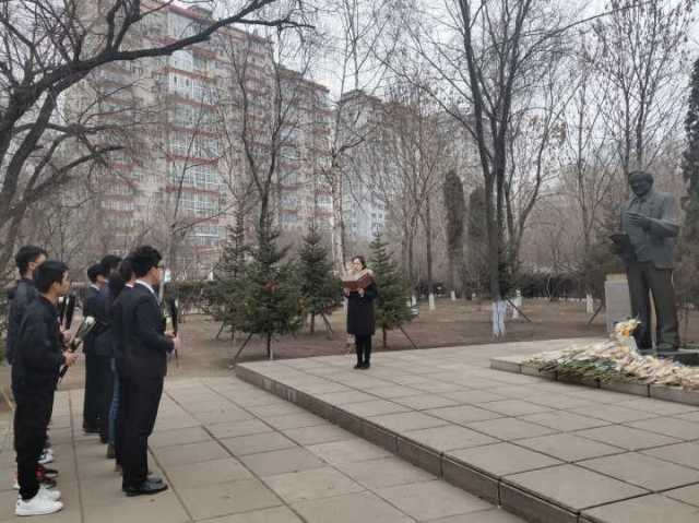 细雨蒙蒙,四月初的哈尔滨夹杂着些许寒冷,为庄严的马祖光院士雕塑更添一丝肃穆。中午十二点半,香蕉视频 团委副书记修文心,香蕉视频 研究生会,香蕉视频 团委学生会全体成员在马祖光院士雕塑前静驻,学生会主席刘青鑫带领大家追忆了马祖光院士一生的光辉事迹和杰出贡献。马祖光院士在科研教育第一线坚持奋斗了一生,为我国的科研教育事业殚精竭虑,鞠躬尽瘁。培养了大批优秀的科技人才、创造了众多的科技创新发明,创立了世界一流的科研机构,为学校,为国家,留下了不可磨灭的伟大贡献。更重要的是,马祖光院士始终对待学生认真耐心,对待工作一丝不苟,他克己奉公,淡泊名利的崇高美德和甘为人梯、谦逊质朴的无私襟怀更是留给我们的宝贵精神财富!这种伟大的人格力量感人至深,催人奋进!