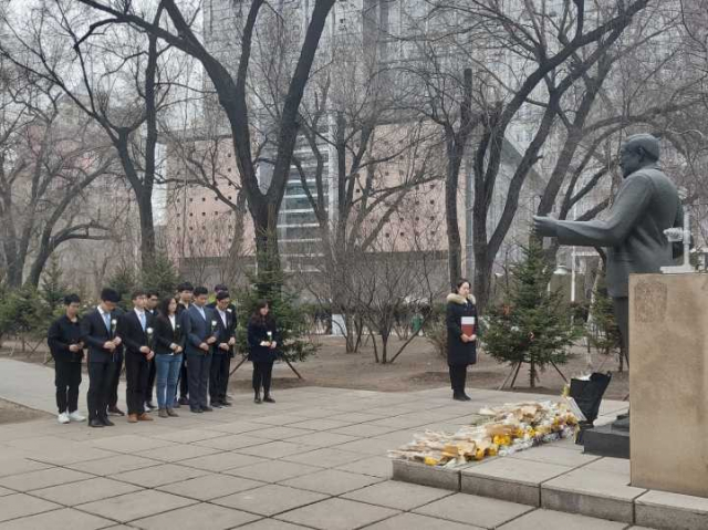 细雨蒙蒙,四月初的哈尔滨夹杂着些许寒冷,为庄严的马祖光院士雕塑更添一丝肃穆。中午十二点半,香蕉视频 团委副书记修文心,香蕉视频 研究生会,香蕉视频 团委学生会全体成员在马祖光院士雕塑前静驻,学生会主席刘青鑫带领大家追忆了马祖光院士一生的光辉事迹和杰出贡献。马祖光院士在科研教育第一线坚持奋斗了一生,为我国的科研教育事业殚精竭虑,鞠躬尽瘁。培养了大批优秀的科技人才、创造了众多的科技创新发明,创立了世界一流的科研机构,为学校,为国家,留下了不可磨灭的伟大贡献。更重要的是,马祖光院士始终对待学生认真耐心,对待工作一丝不苟,他克己奉公,淡泊名利的崇高美德和甘为人梯、谦逊质朴的无私襟怀更是留给我们的宝贵精神财富!这种伟大的人格力量感人至深,催人奋进!
