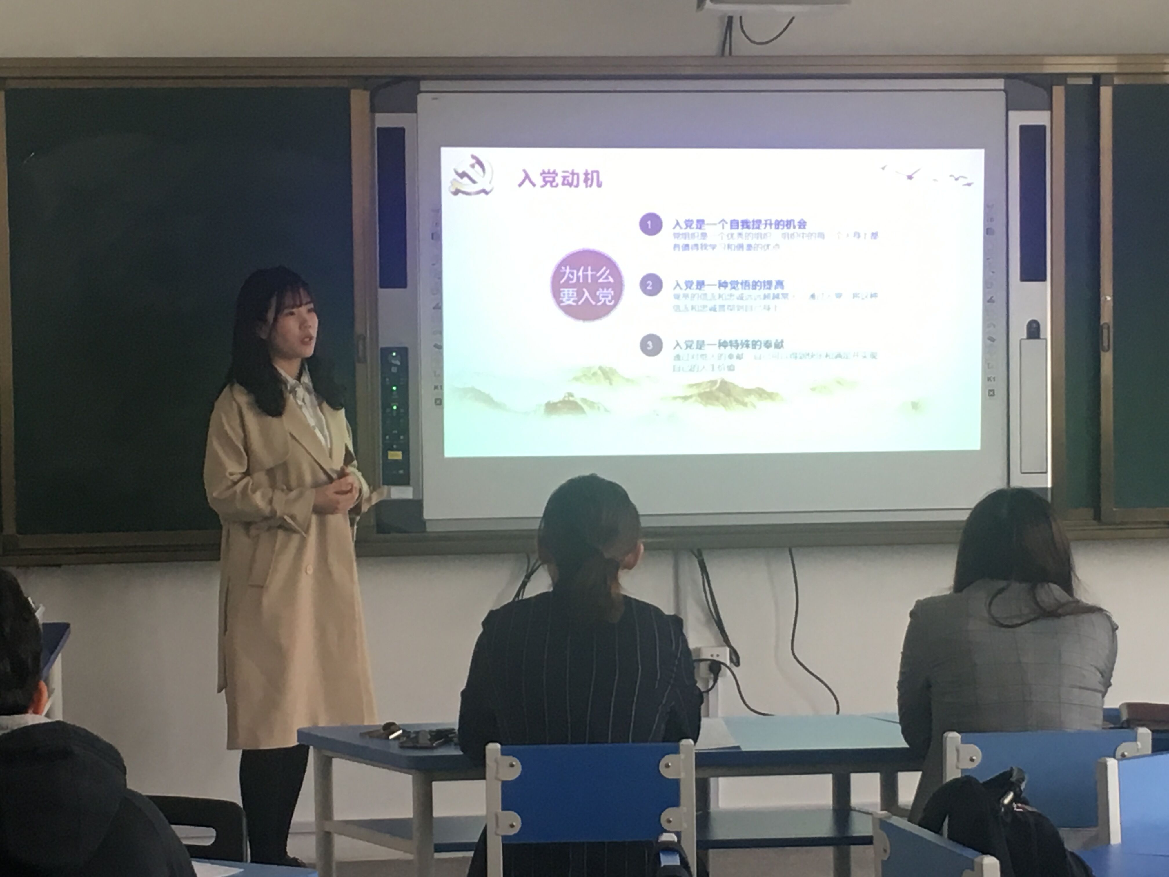 答辩过程中,21名参加答辩的同学依次上台讲述了自己包括学习成绩、奖惩情况、工作生活等方面的基本情况,表明了自己的入党动机和决心,并且分析了自己的优缺点,以及自己对未来的规划和展望。在每位同学讲述完后,评委们积极提问,从党的基本知识到政治时事,从生活作风到工作表现,从各个方面对参加答辩的同学进行考核,同时对他们的不足之处及时指出,帮助大家端正态度,明确目标。