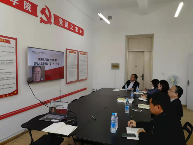 刘院长首先梳理了习近平总书记关于制造业发展的重要论述,带领大家重点学习了习近平总书记在河南考察时关于发展制造业的重要指示,同时结合工信部在英国举办的“智能制造人才培养专题培训班”的学习,作了题为《关注技术进步的社会属性 思考人才培养的“变”与“不变”》的报告,谈及四点体会。一是把握时代内涵,定位大学使命,树立自信,切实发挥大学作用,为国家发展做出更大贡献。二是扩展技术内涵、完善专业培养和升级人才培养知识体系。尽快补齐短板,整体提升我国工业体系的质量基础,使我国制造业由“大”到“强”,加快智能制造标准化体系建设与国际标准转化和国家修订,重视标准化领域人才培养。三是加强战略性引导,协调优化社会人力资源布局。国家需继续加强战略性基础产业的引导,继续加强对基础学科和基础工具学科的人才培养布局和相关高校建设的支持,进而引导城市间人口理性流动。四是与牛津、剑桥等世界顶尖大学相比,我们在师资队伍建设方面还存在很大的差距,我们要继续高度重视师资队伍的成长,探索建立真正意义的学术休假制度。