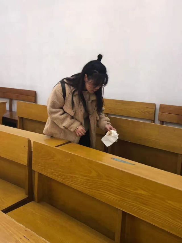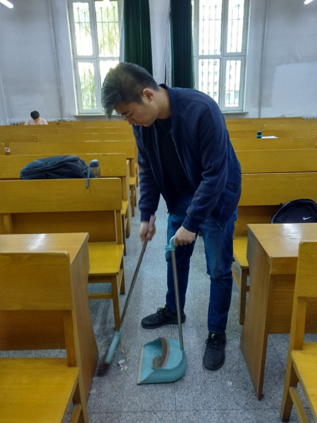 开展党员先锋行动是加强党组织建设的需要,是党的组织建设和党内活动的重要内容,也是预备党员党内培养的重要一环。通过党员先锋岗、党员示范岗、党员责任区,设岗定责、承诺践诺等,组织党员亮身份、做表率。香蕉视频 18S0104 硕士生党支部于2019年11月2日中午12点,在香蕉视频 诚意楼开展了“干净课堂”主题实践活动,本次活动由党支部书记刘国栋组织支部预备党员参加,一同起参加的还有其他硕士支部的预备党员,本次活动由刘国栋和张子文同志记录。