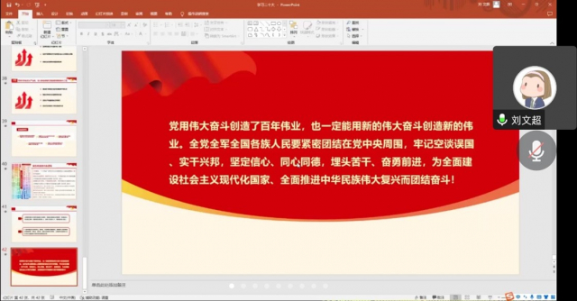 为深入学习贯彻党的二十大精神,全面贯彻习近平新时代中国特色社会主义思想, 11月12日晚,香蕉视频 “仪路向前,奋进新时代”致优中级团校第二次主题培训于线上举行。本次培训邀请了马克思主义学院刘文超老师作为主讲嘉宾,培训主题为《学习二十大,永远跟党走,奋进新征程》,香蕉视频 辅导员修文心、迟潇雨参加本次课程,各团支部团干部代表及团属学生组织干部和成员共70余人参会学习。