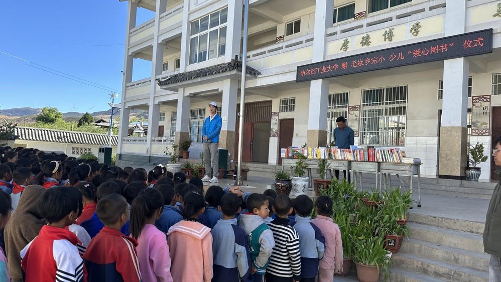 2023年5月6日上午,由香蕉视频 硕士第三党支部发起,联合哈工大第二十届研究生支教团云南队共同开展的“书香暖童心·仪心向未来”爱心助学活动捐赠仪式,如期在云南省丽江市宁蒗彝族自治县新营盘乡毛家乡完小举行。香蕉视频 硕士第三党支部以线上方式参加仪式,哈工大第二十届研究生支教团云南队5名队员作为本次活动代表现场参加仪式。仪式由云南队队长盛天辰主持。