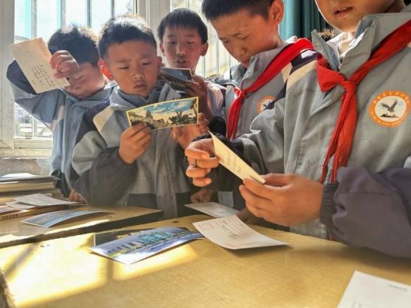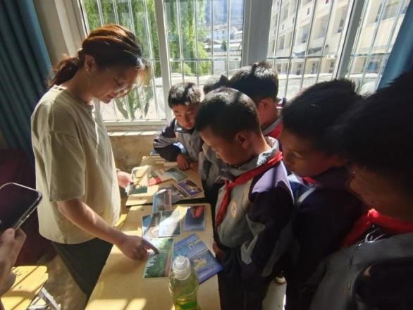 活动的最后,队员们和当地老师一起将图书整齐摆列在学校的图书室中,并给孩子们分享远在哈尔滨的大哥哥大姐姐给他们寄来的明信片,孩子们也纷纷表示自己将会在课上认真学习,课下多阅读书籍,未来去走向更广阔的世界。捐赠活动中,支教队员为大家录制拍摄了许多现场的影像资料,详见附件1。