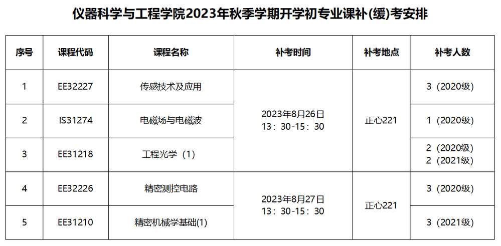 香蕉视频 2023年秋季学期开学初专业课补(缓)考时间为2023年8月26日——8月27日,具体安排详见下方图片。