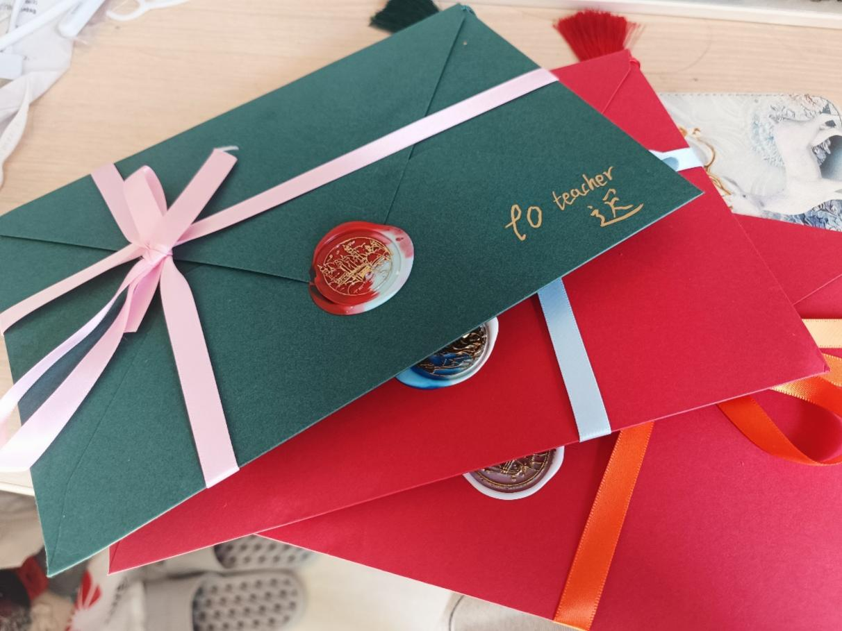 同学们在节日前将贺卡写好后装入信封,充分发挥创意、精心设计,并用绸缎和印章装饰信封,用行动表达对老师们的真挚祝福。9月10日上午,同学们在课后将各自精心制作的贺卡献给教师,对在香蕉视频 教学科研、管理及服务岗位上辛勤付出的全体教师致以最深的敬意和最诚挚的节日祝福。与此同时,老师们还讲述自己教书育人的工作生活经历,展现了哈工大人培根铸魂的师德师风和拳拳爱国心。在场同学们感悟到身为新一代哈工大人更当追随前辈们的脚步,修身立德、严于律己、不辍耕耘,努力成为可堪大用、能担重任的栋梁之才。