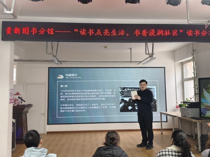 4月16日,香蕉视频 选派学生参加贵新社区“读书点亮生活,书香浸润社区”读书分享会,与校内外各学院同学共话阅读、分享感悟。沙一凡同学带来了《乡土中国》的分享,带领大家重新认识了我们脚下这片土地的文化根脉;张博文同学则分享了《平凡的世界》,讲述了普通人在时代历史进程中所走过的艰难曲折的道路,让在场的每一个人都深受触动。